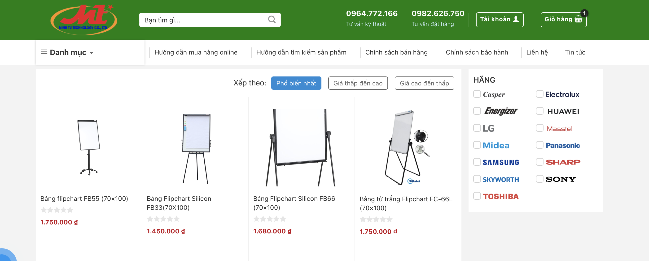 + Tại trang danh mục sản phẩm, bạn có thể tìm theo các bộ lọc “Giá phổ biến “ , “Từ thấp đến cao” hoặc “Từ cao đến thấp”.