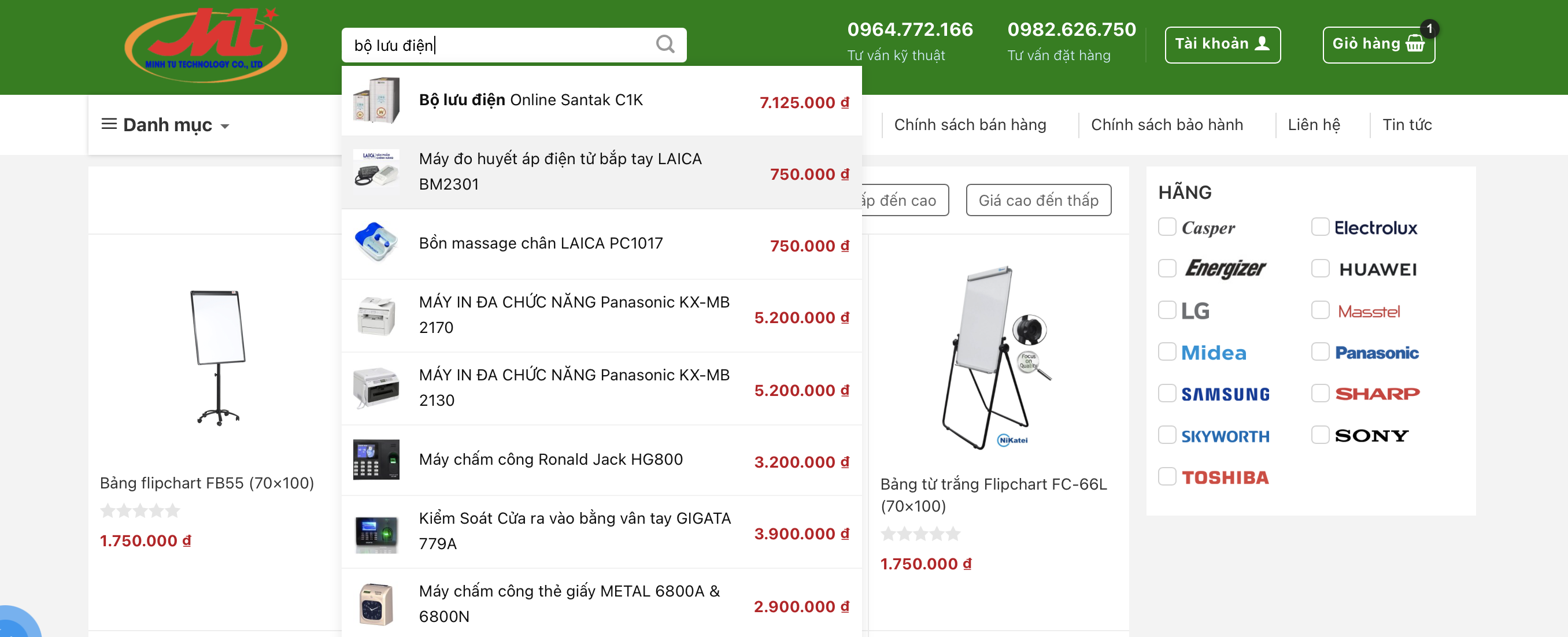 + Tìm nhanh khi đã biết tên sản phẩm: bạn chỉ cần gõ “Tên sản phẩm” vào ô tìm kiếm, hệ thống sẽ gợi ý cho bạn tên sản phẩm đúng hoặc gần đúng nhất hiện bán tại Điện máy Minh Tú.