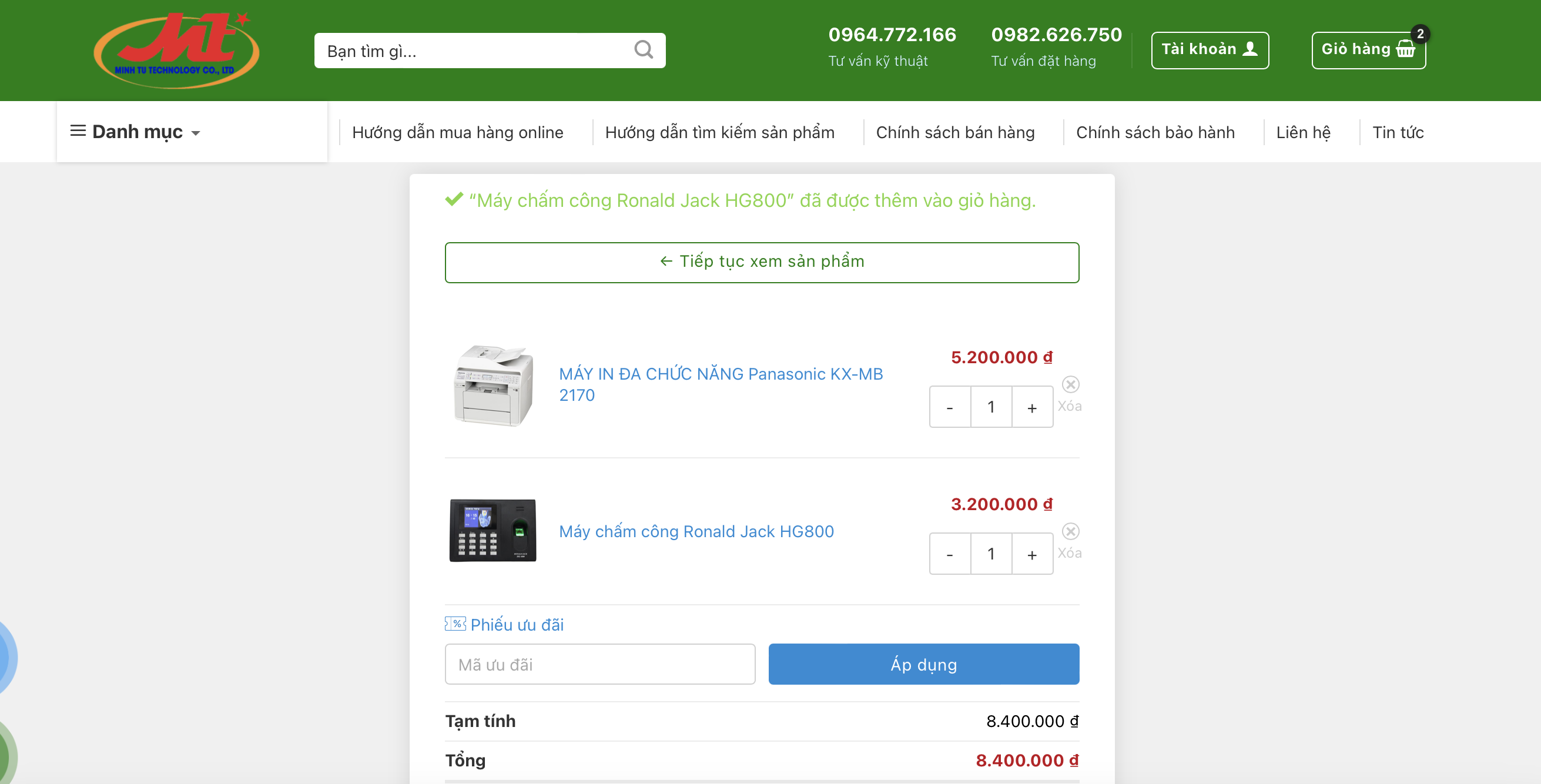 + Nhấn vào nút “Thêm vào giỏ hàng”.
