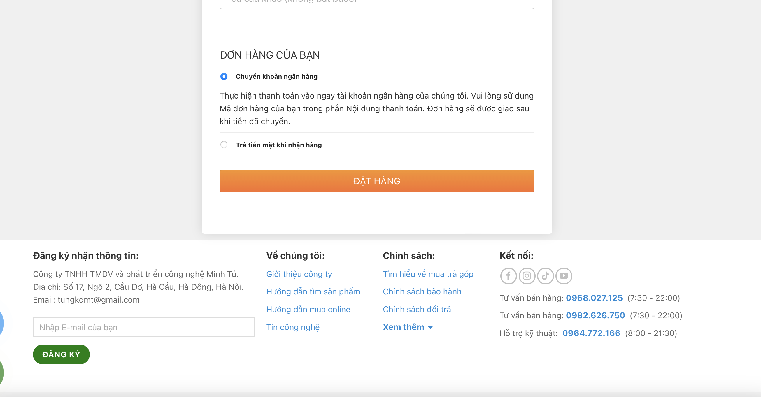 Cách 2: Đặt mua hàng trên website Điện Máy Minh Tú