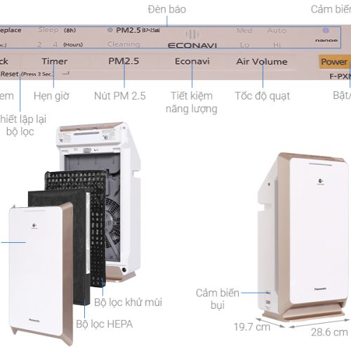 Máy lọc không khí Panasonic F-PXM55A thiết kế nhỏ gọn dễ bố trí, tích hợp nhiều công nghệ tiên tiến, hiện đại vừa khử virus, vi khuẩn, mùi hôi vừa tiết kiệm năng lượng, thân thiện môi trường, bảng điều khiển có đèn hiển thị và đèn báo tiện theo dõi, quan sát và tùy chỉnh, phù hợp sử dụng cho không gian dưới 42 m².