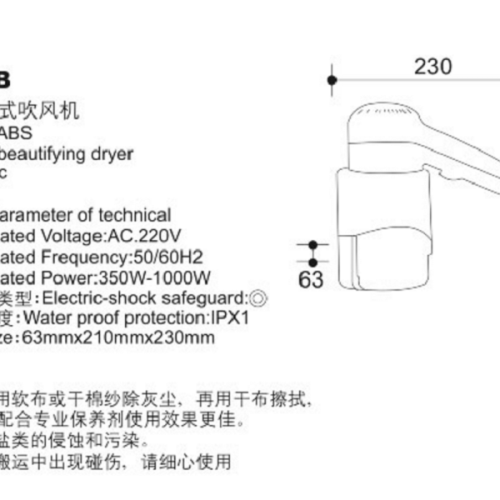 Máy sấy tóc treo tường YG-315B là model máy sấy tay chất lượng tốt nhất của nhà máy YIGAO trong series máy sấy tóc treo tường với chế độ an toàn, chống nước theo tiêu chuẩn IPX 1 nên cực an toàn với bạn